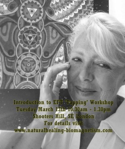 Introduction to Emotional Freedom Technique 'Tapping' Workshop being held on Tuesday March 13th, 10.30 to 1.30 at Shooters Hill, Greenwich, SE London. This workshop takes a look at energy 'Tapping' - what it's all about and how to do it to enhance your health, success and wellbeing. For further info visit www.naturalhealing-biomagnetism.com This workshop is for beginners and the cost is £45, refreshments provided. Love and Light, Susan